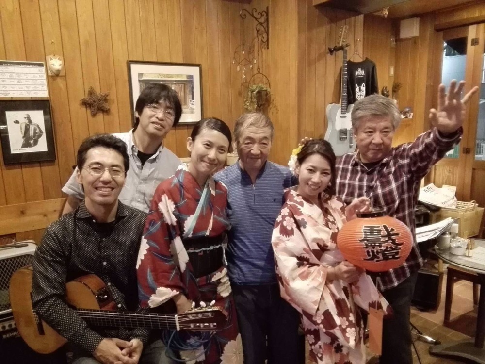 ホンダシビックやオンワード樫山の CM にも使用された、スティーヴィー・ワンダーの ”Overjoyed” からビリー・ジョエルの ”Honesty” のインストのデュオで始まりました。この後、入られた Misuzuさんもスティーヴィー・ワンダーの ”Isn't She Lovely” やアップテンポでの ”How High The Moon”、ここでは高速での前田さんと原さんの掛け合いも楽しかったです。他にはルバート風にスタートして、ボサノバへと変わる ”It's A Sin To Tell A Lie” も素敵でした。2nd では小谷さんも入られ、ツインギターのトリオでジョニー・グリーンの ”Out Of Nowhere” などから Misuzuさんはビートルズの ”Let It Be” ”In My Life” などを歌われて、バート・ケンプファートの ”L-O-V-E” を、今回も店のマスターの古田さんがカズーで加わられて楽しさ一杯、そして Misuzuさんと前田さんは素敵な浴衣姿での参戦、目にも耳にも体にも良いライブでした。